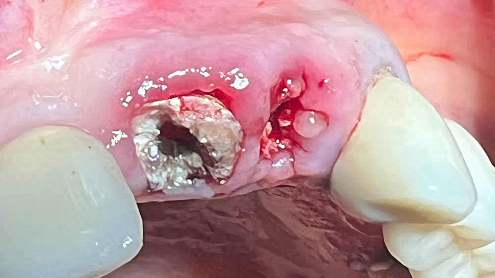 - خارج کردن بدون آسیب به استخوان اطراف ریشه: ابتدا ریشه دندان آسیبدیده با حداکثر ظرافت و با تکنیکهای کمتهاجمی (Atraumatic Extraction) خارج میشود تا استخوان اطراف کمترین آسیب را ببیند.